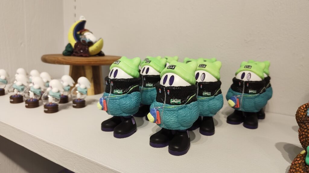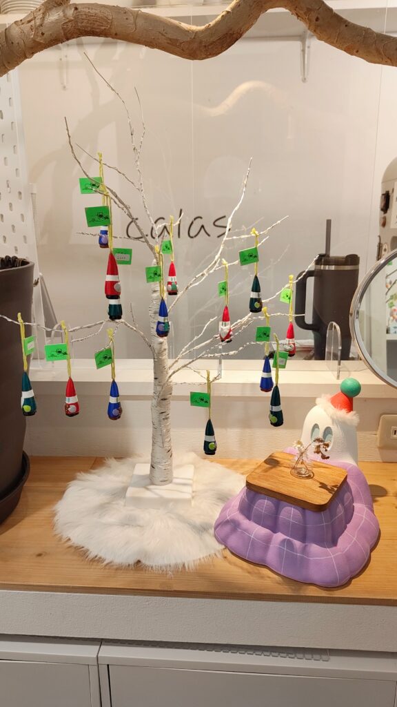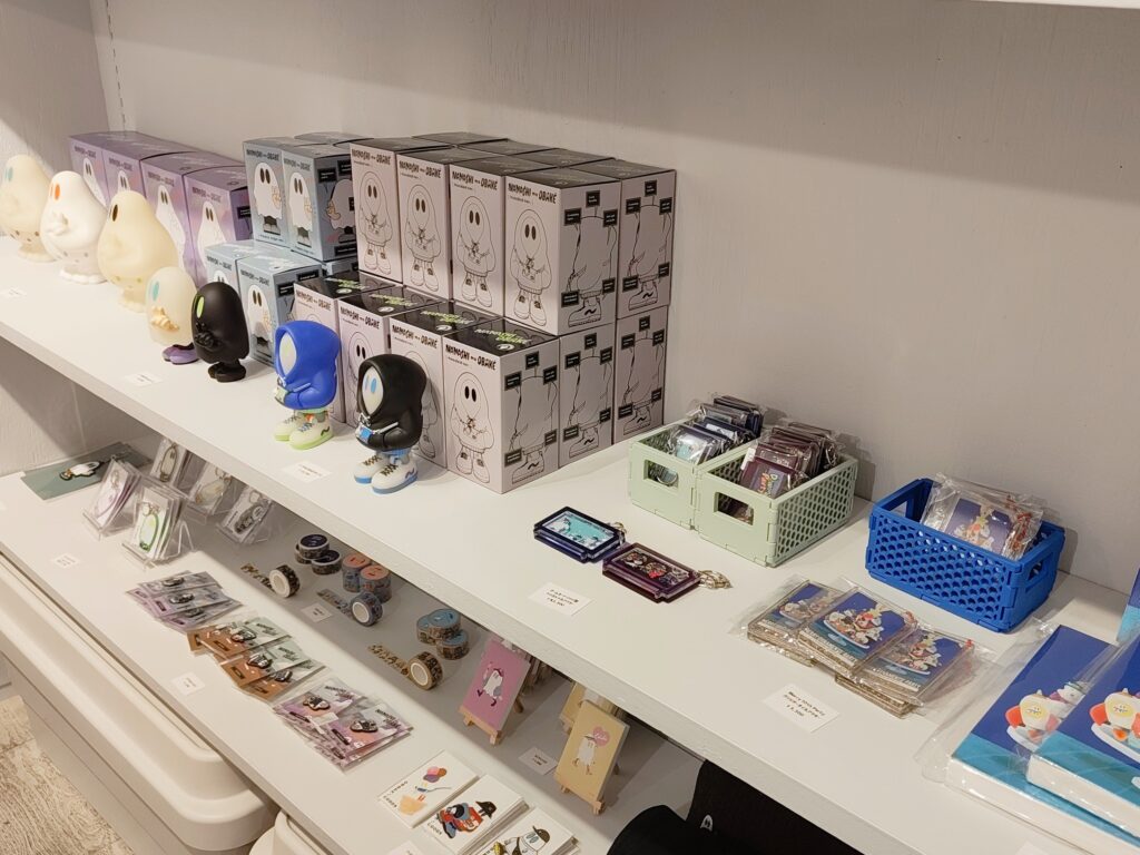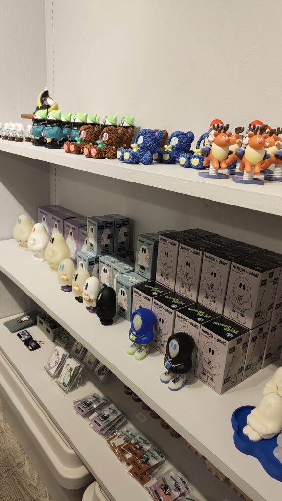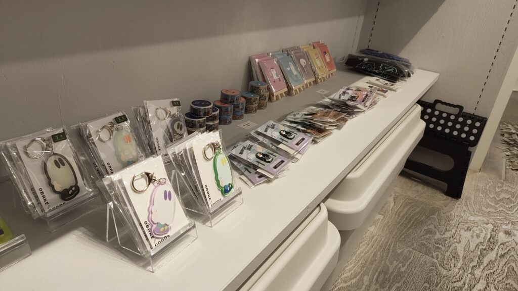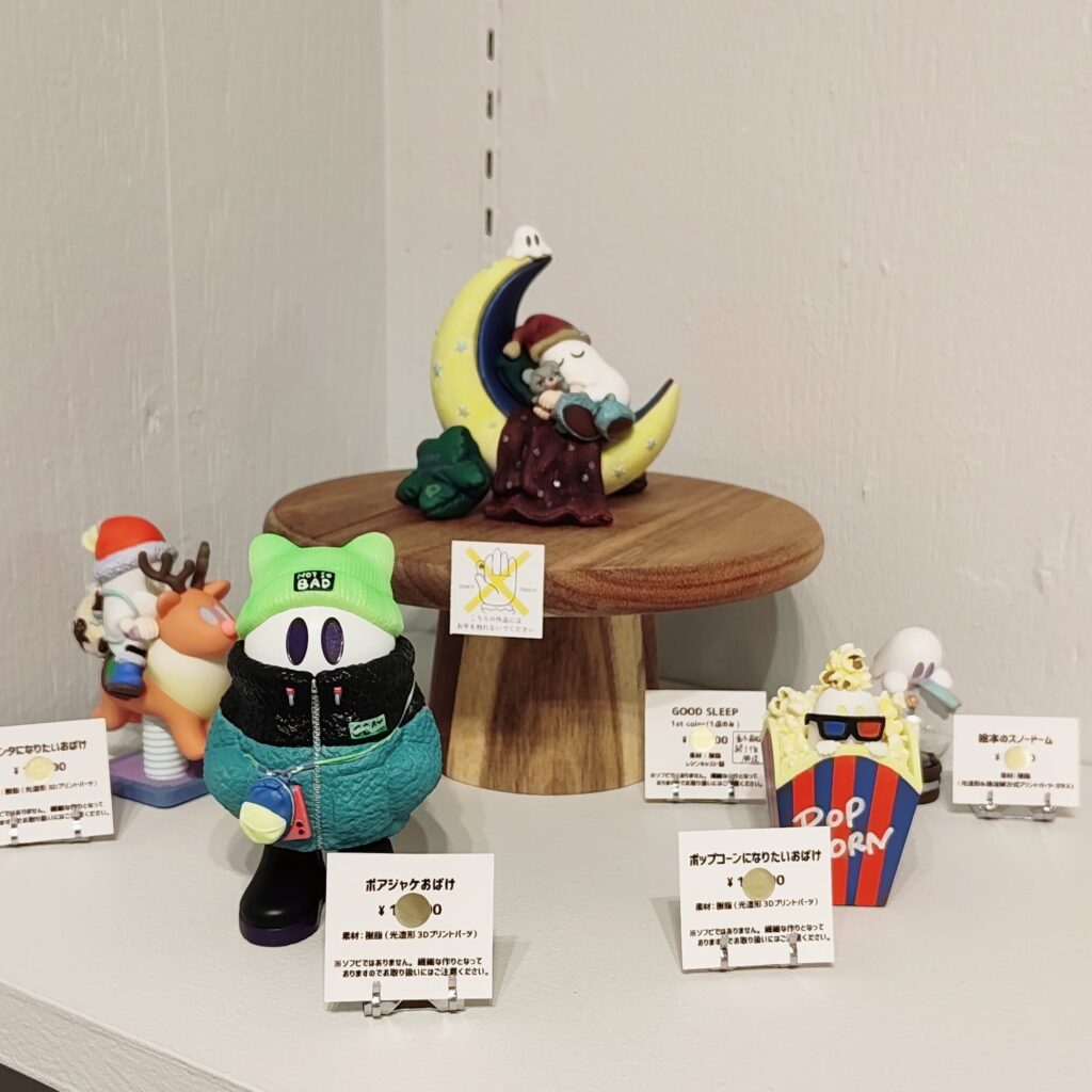 10周年記念グッズとともに、おもちゃ屋さんを意識したラインナップのおばけフィギュアやオーナメントを展示販売しました。
